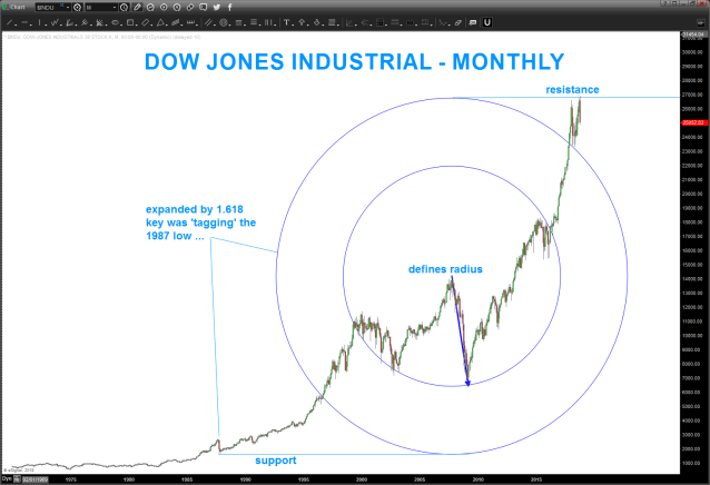 I like to draw circles … just work w/ me. how the 1987 low and recent high are connected by geometry