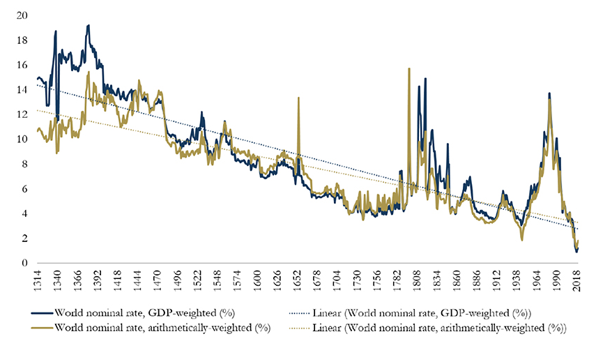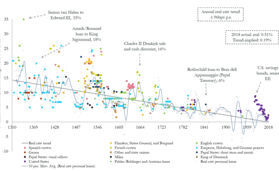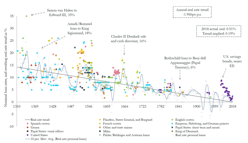 Visual Capitalist has some great graphics, but they only go back 700 years. Still, that’s a pretty big trend, isn’t it?