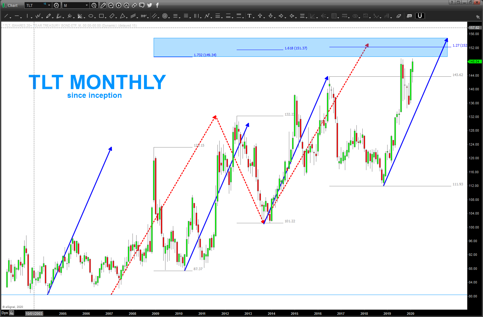 Here’s TLT – 149 to 154 looks like STIFF resistance ….
