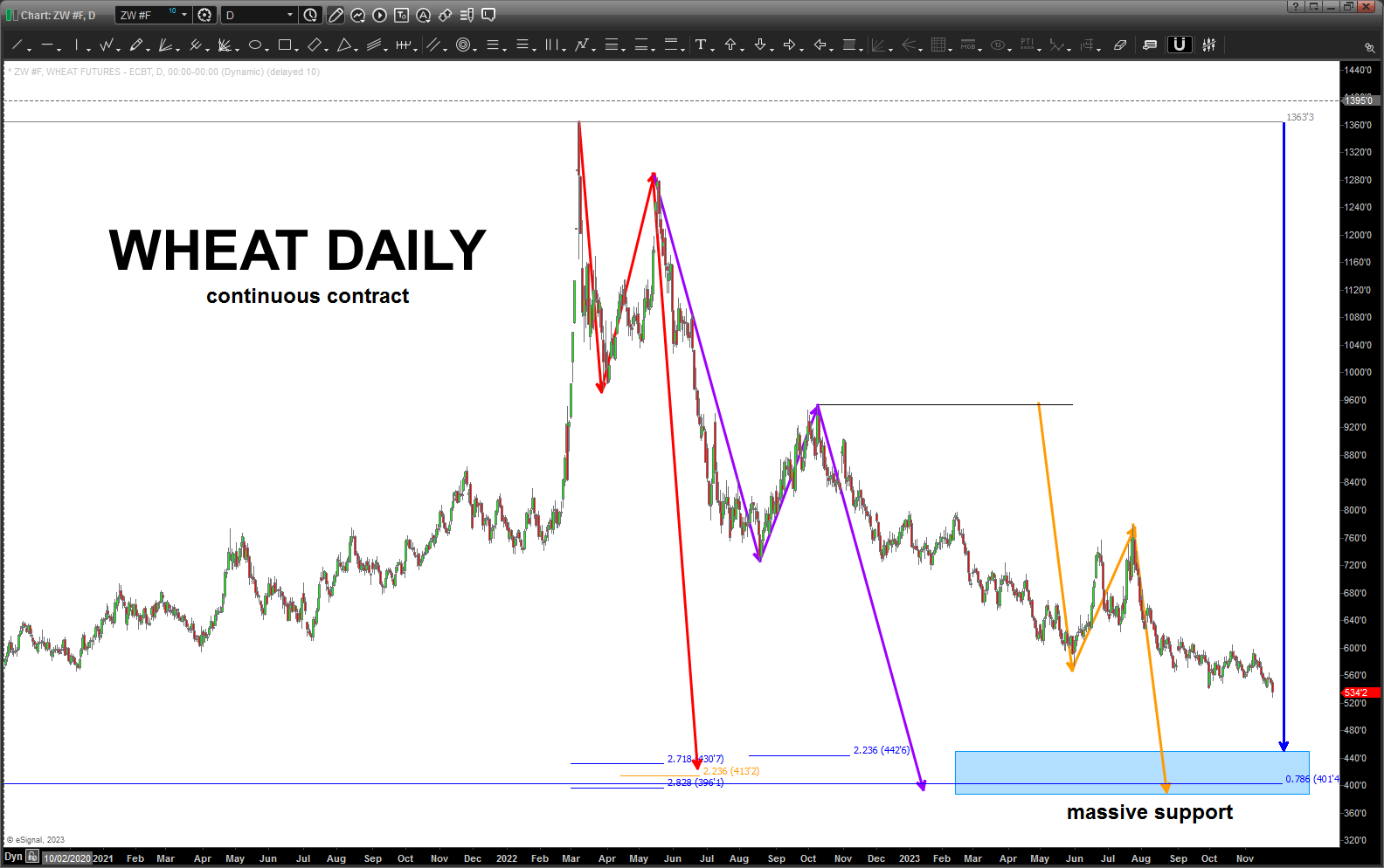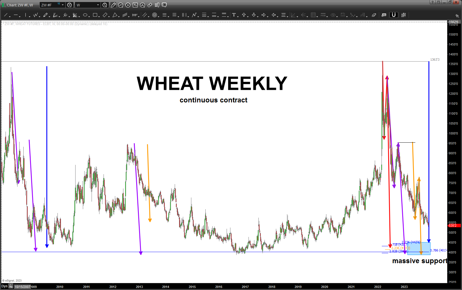As I continue to track wheat we can see where more “measured moves” and projection PATTERNS are creating a very powerful BUY zone for wheat. That being said, it’s still a pretty far down there so patience is the key.