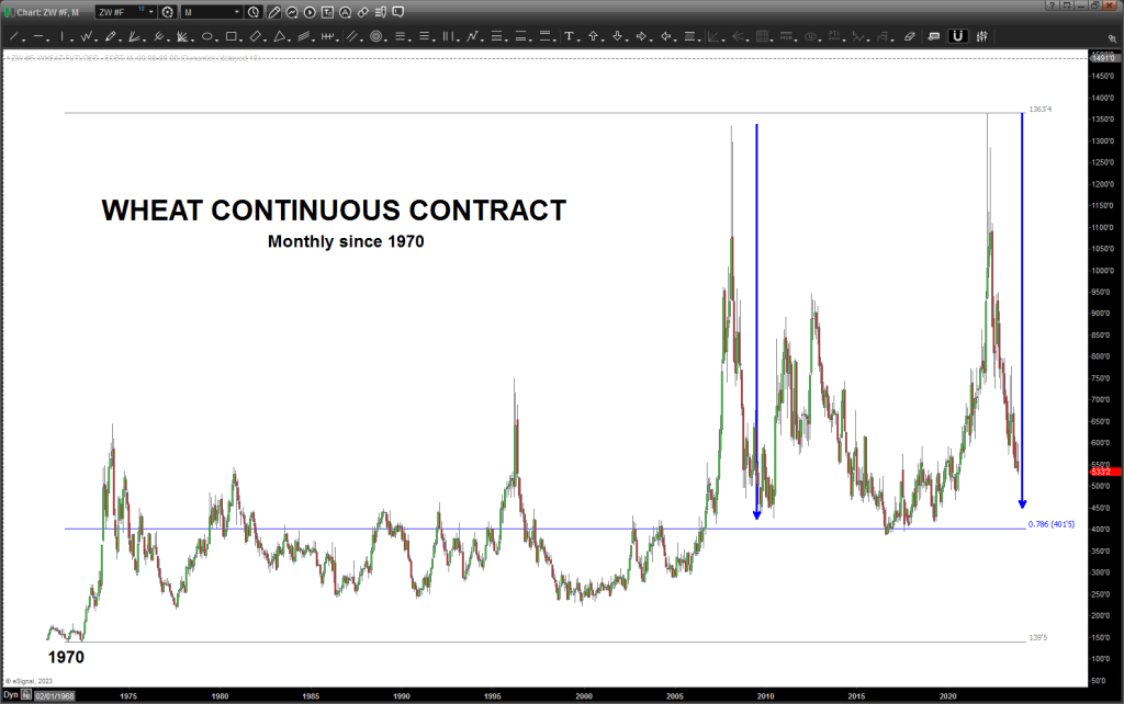 Would be “nice” to see DBA bottom down at that pattern level and Wheat to be at/around the the zone shown below for a GREAT BUY ….