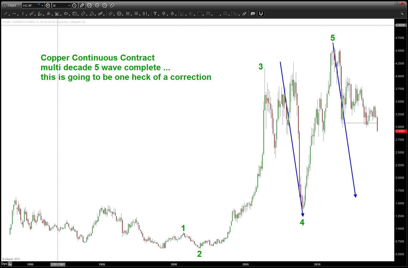 CLIFF NOTES: the move in copper should not be suprising // we are correcting a multi-decade 5 waves up complete. This has shown to put pressure on emerging markets and china. All according to the script.