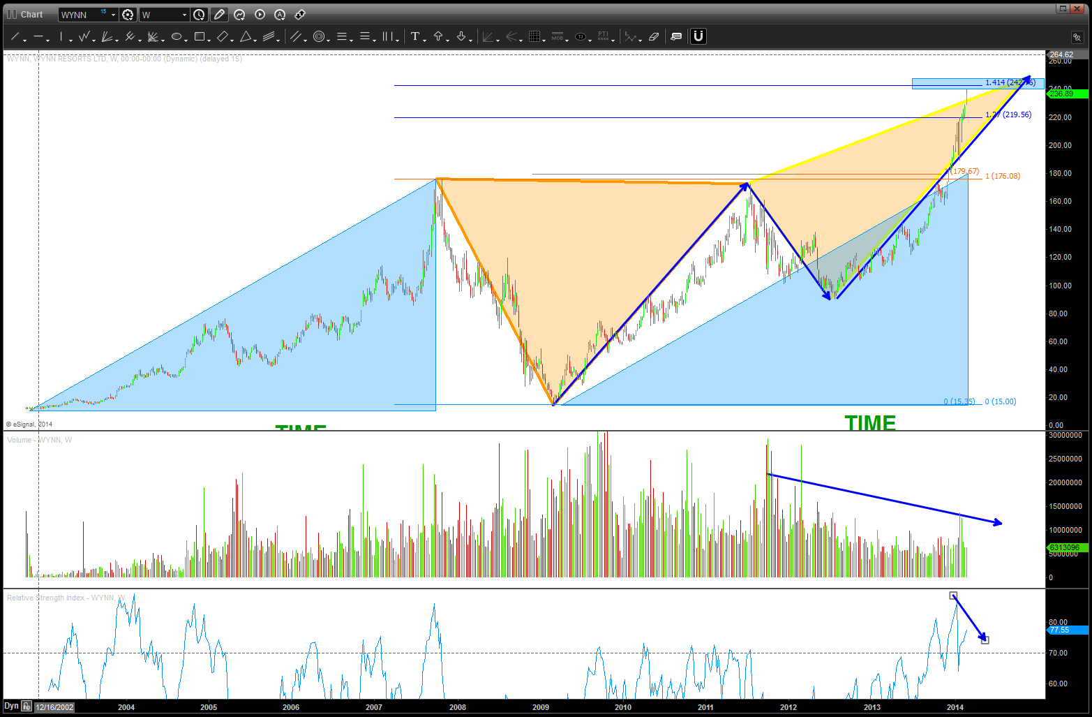 - THESIS: IF WYNN keeps going HIGHER so will the stock market (bullish) HOWEVER, if people are BUYING a company that makes its living on speculation, tourism and “it didn’t happen here” Vegas — then isn’t it a contrarian indicator that this ENTIRE rally since 2009 is a house of cards? We will find out — soon.