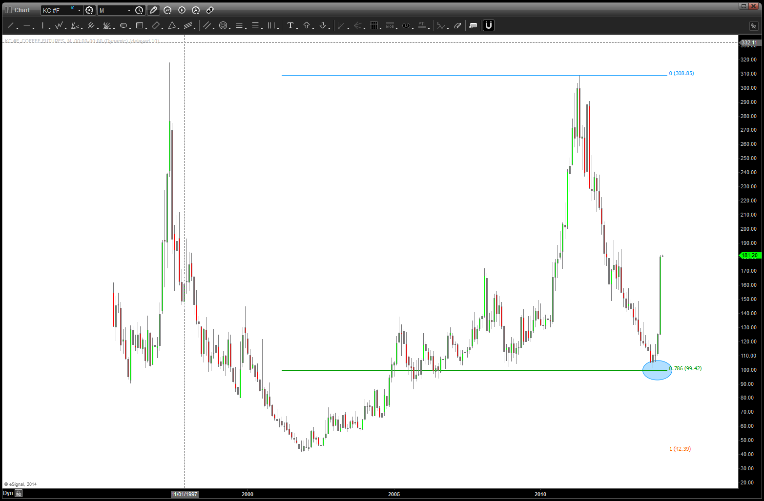 the Coffee futures came down to the monthly node ID’d here: