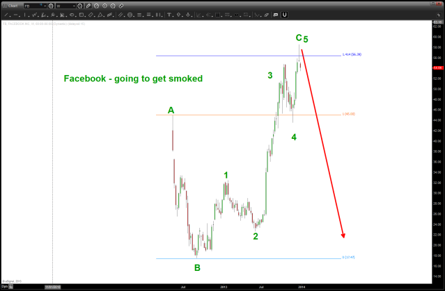 here’s a look at the high flyers w/ FB included … “this stock is going to get smoked” was pre-mature but do believe the RED ARROW is where it’s going. Correction should take it down to HIGH of IPO price around 42 bucks.