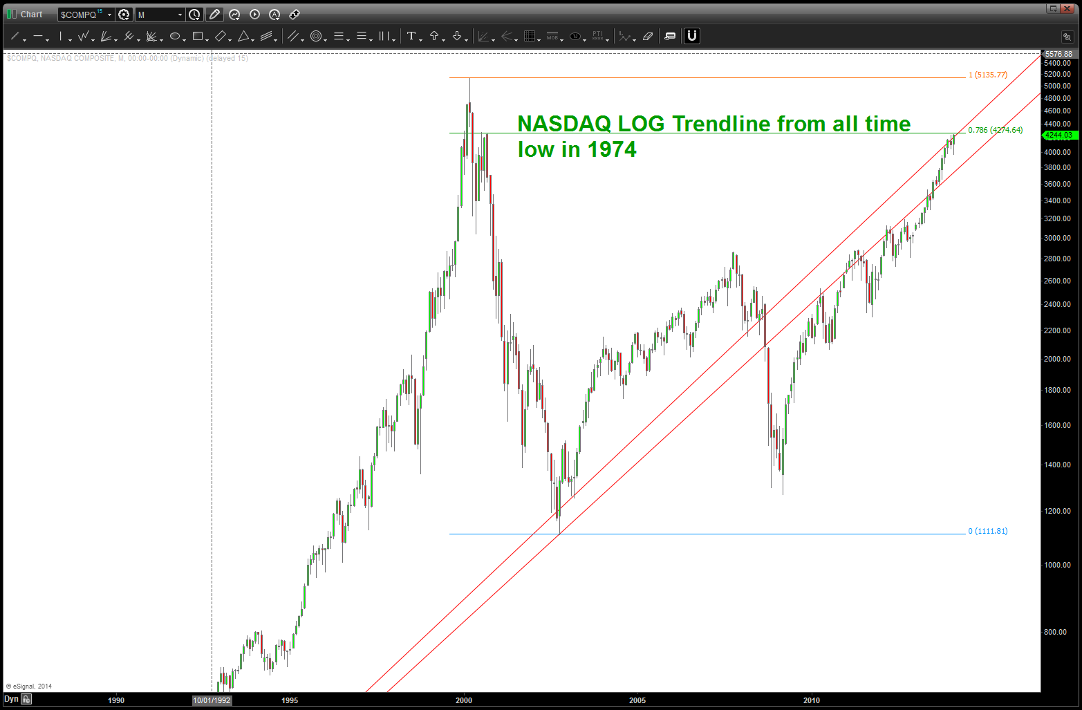 so, here’s where we are now — in a very extended and “almost parabolic move up” — so I have come to the conclusion that GOOG will NEVER GO DOWN and JUST KEEP BUYING IT …the stock market always goes up or will always come back so dollar cost average yourself to financial freedom.