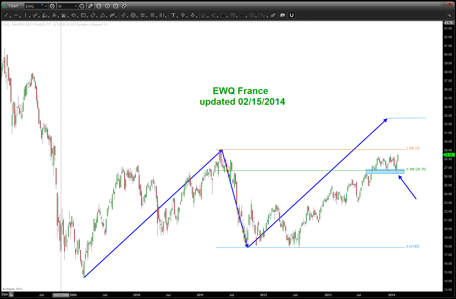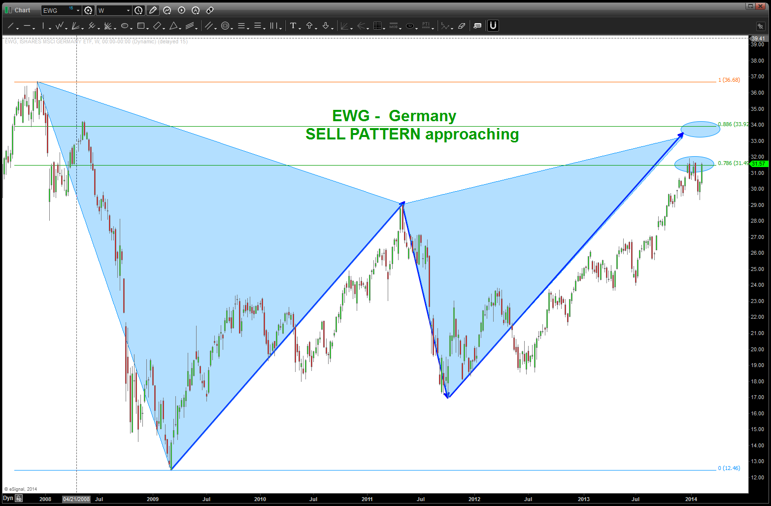 - for the BEARS we are concerned about the SIZE and STRENGTH of the past two weeks of candles. the only country that doesn’t have this feel, as we see the world (literally) is Japan. The European ETF’s show strength in the bullish weekly engulfing patterns.
