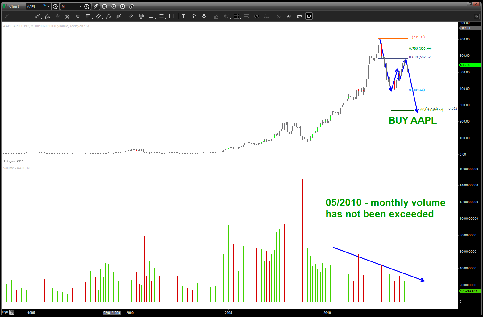 where are we now? We think AAPL is done and an entire leg down is going to being … above 610-620 and this idea is wrong …
