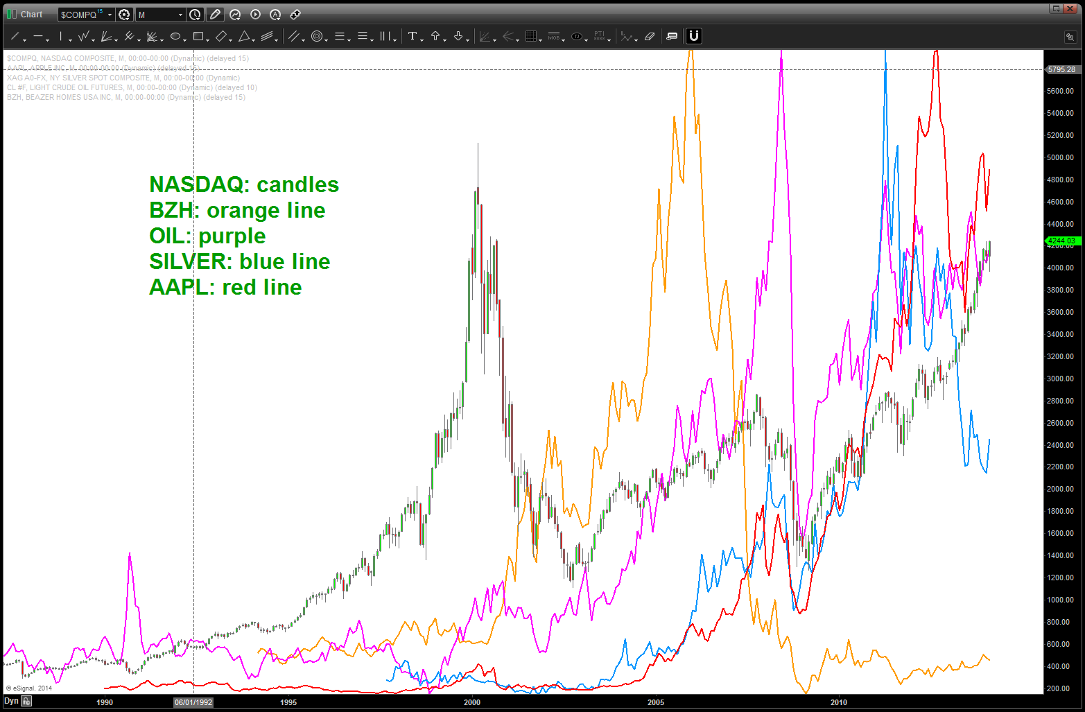 For all intensive purposes – it’s been “stuck” in a 4 cent range but PATTERNS suggest we are “prepping” for a big move … so, in order to get a “feel” for where we MIGHT be let’s go back to the “beginning” at 71 ish and work thru to present…
