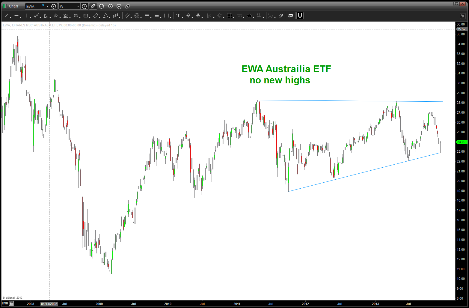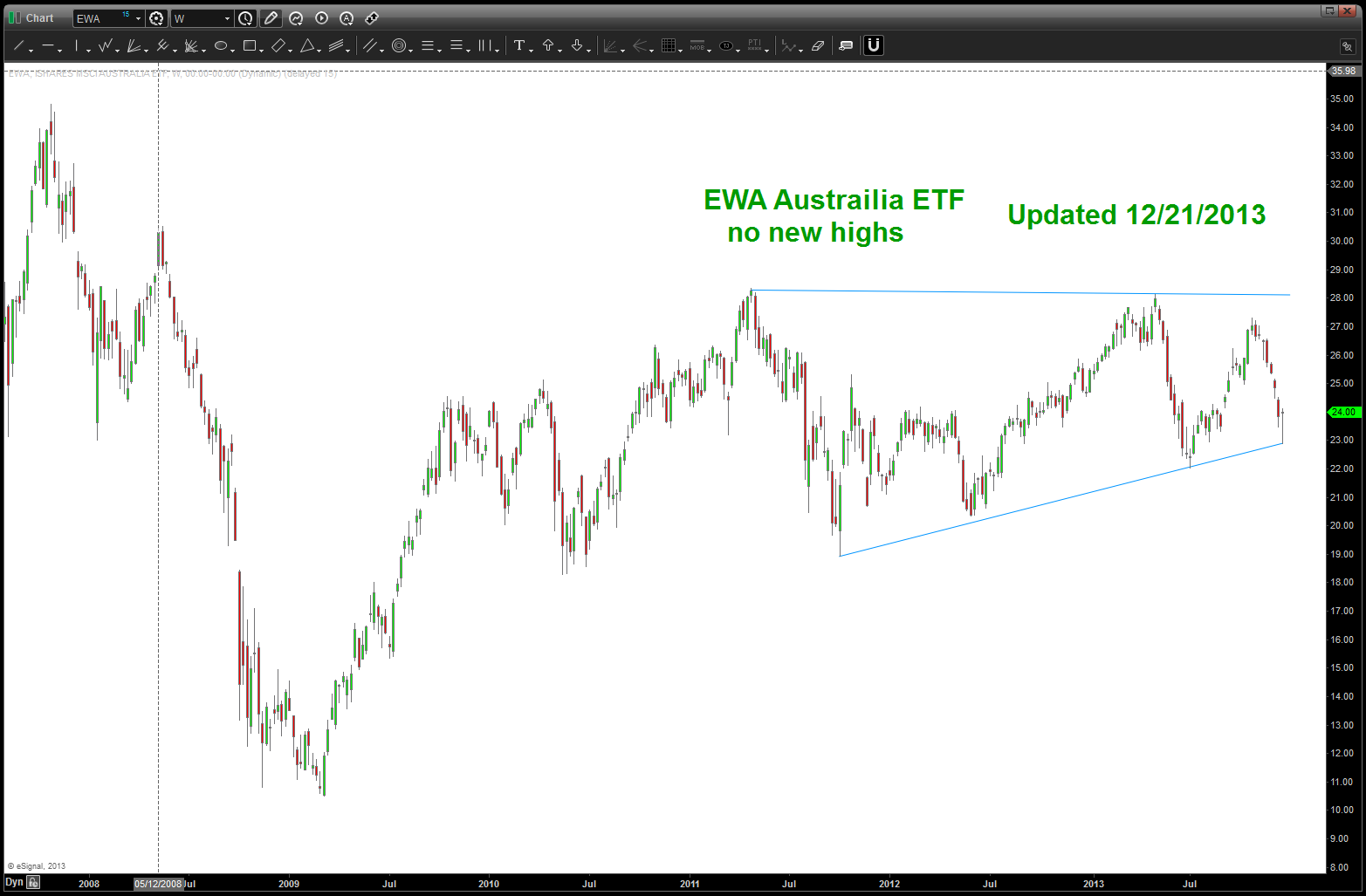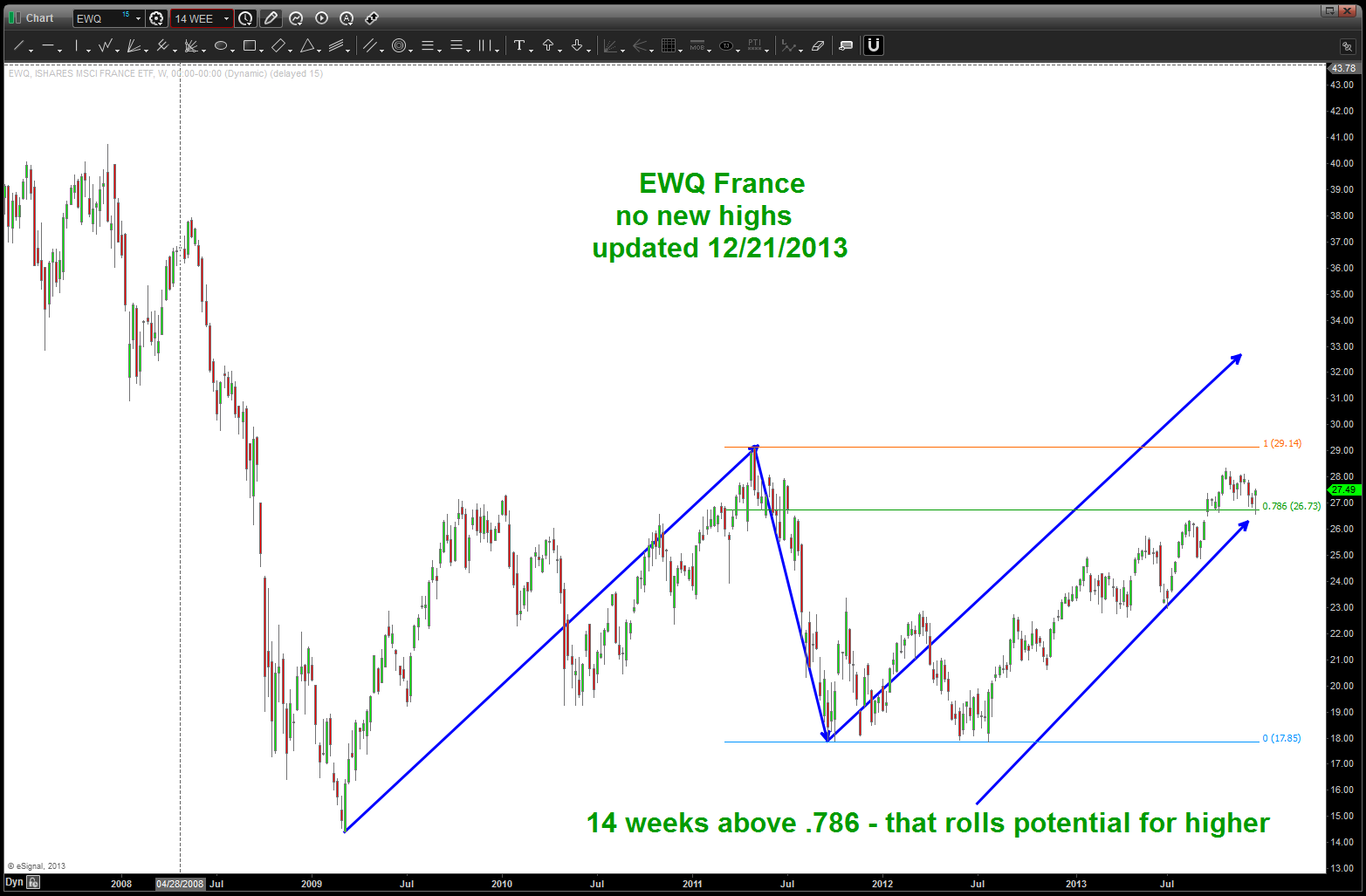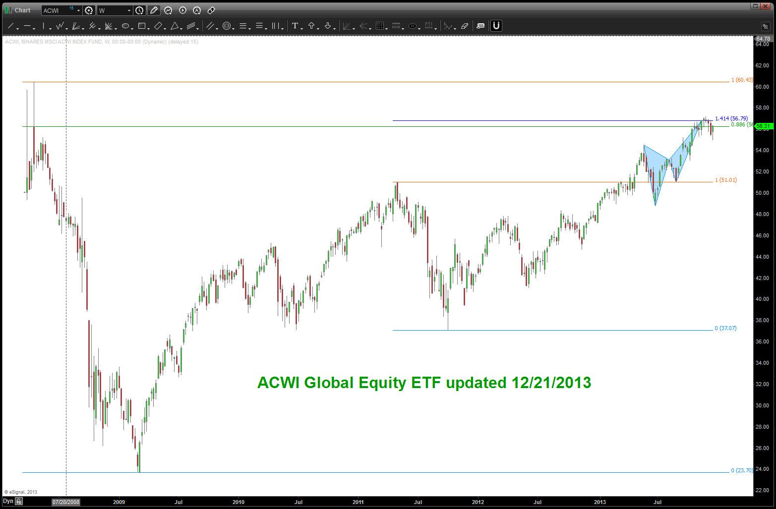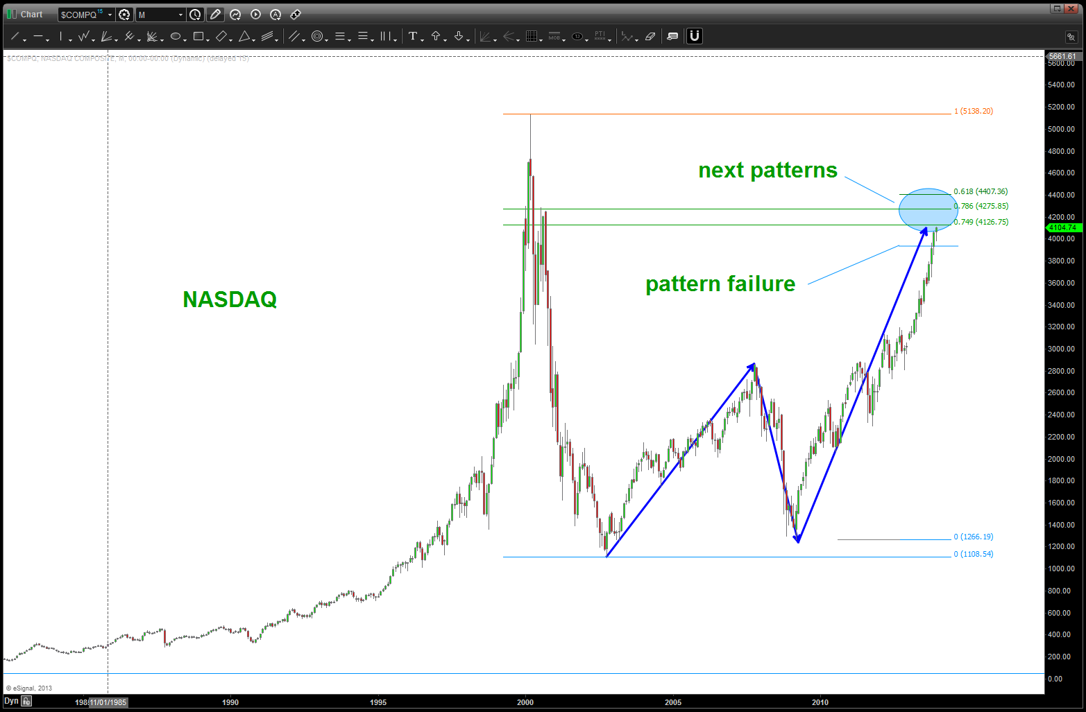 I am neither bearish nor bullish. I am a pattern recognition trader that puts everything into the context of human behavior. the rally from 2009 is so over stretched that 2014 will bring, potentially, a down side move of enormous proportions. There I have said it …simply based on the MONTHLY (read long term) SELL PATTERNS present this is going to be a THUMP. If the PATTERNS FAIL (which they do, obviously) then the band will play on … I just don’t see it happening and, quite frankly, i am alone in my thinking.