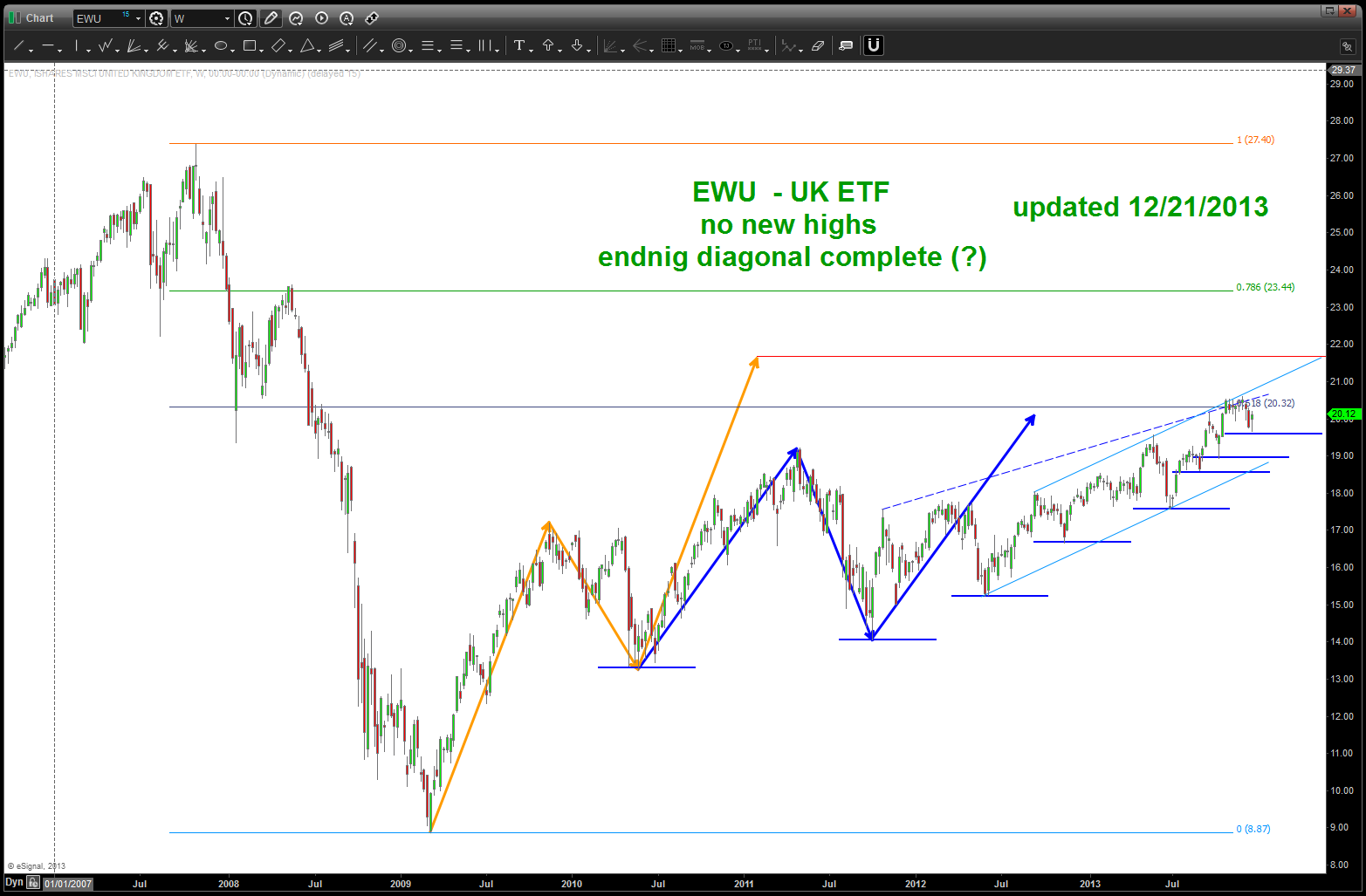 on the other hand http://www.marketwatch.com posted this today: http://www.marketwatch.com/story/golds-13-year-bull-run-breaks-with-29-annual-loss-2013-12-20?dist=countdown . my past couple posts on Gold and Silver have shown how I “think” we are carving out a 5th wave that could be the BUYing opportunity. As the pattern to BUY appears the PRESS will be declaring it’s no good, get out of Gold and we’ll stop seeing those CNBC adds about silver and gold and metals ETF’s …