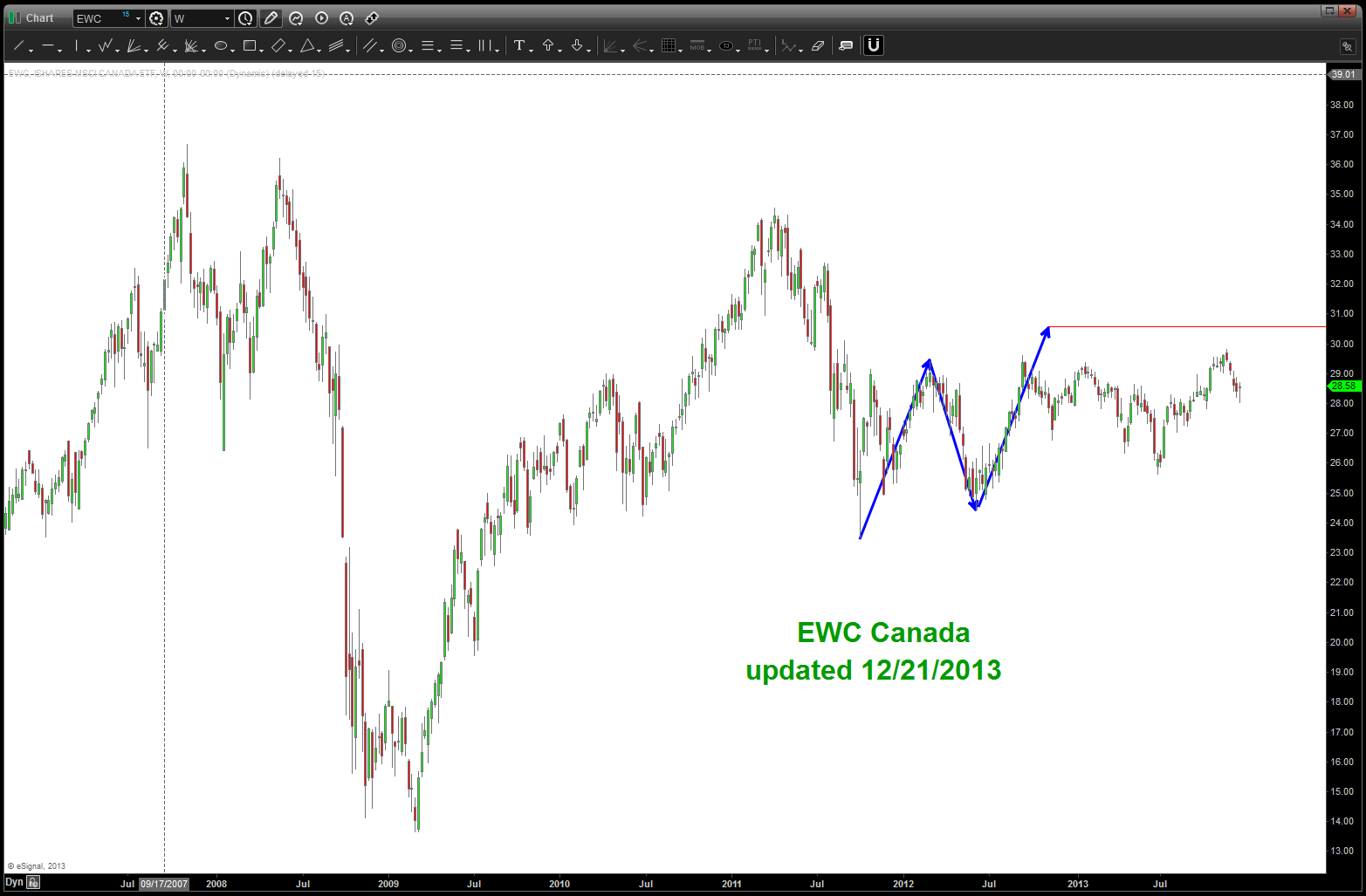 - at most inflection points, the $OSX and Loonie are synchronized nicely. however, for most of 2013 this relationship has diverged. in that, while one was going UP (Oil Services Index) one was going down (Loonie weak)
