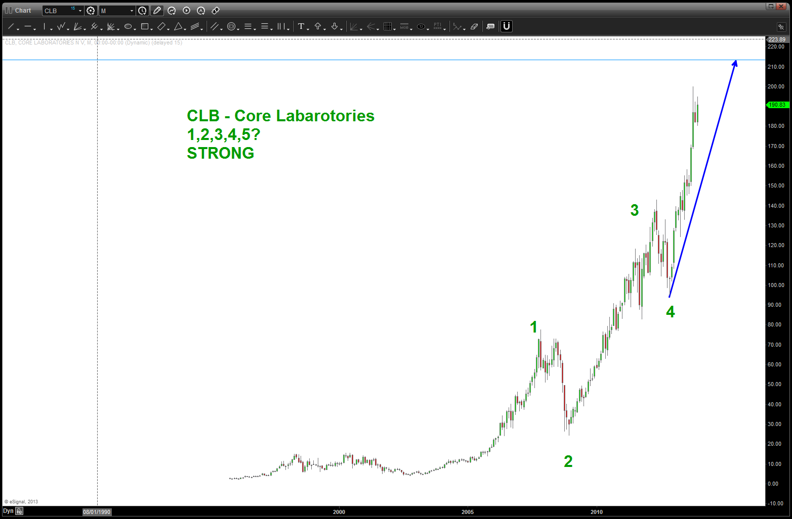 PCLN: again, a clear 5 wave count present and a high flyer of AMAZING proportions .. perhaps a little higher to targets shown? but 5th wave is weakening.