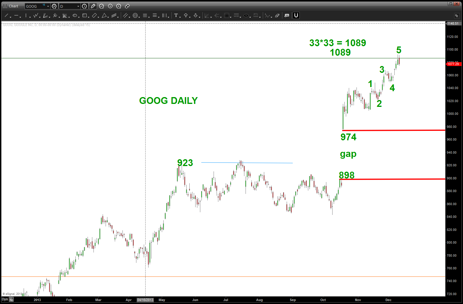 I should have known … for those who have been reading this blog, we’ve seen 1.68179 come up a lot lately. It was the extension target on an intraday basis for the emini, it was a price projection ratio (1.68179-1 – .68179) for the Pound vs USD and a host of other. the reason I “should have known” is a piece was put out on first call to SHORT GOOG at/around 1075 and stop out above 1082 (or something like that) I didn’t take into account the 1.68179 ratio and that’s what looks like it did it …