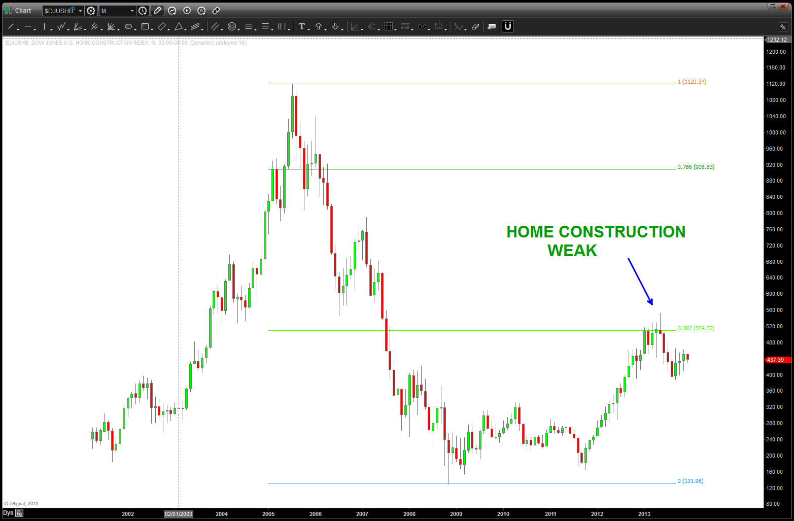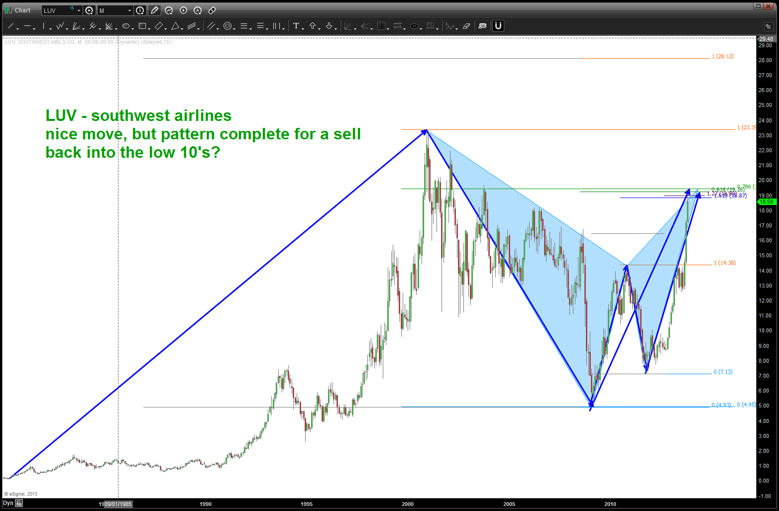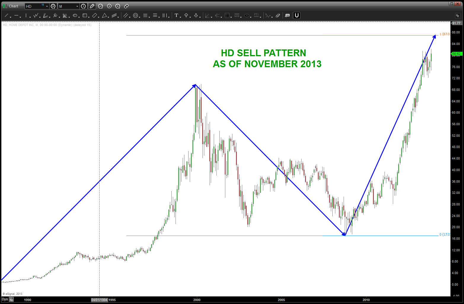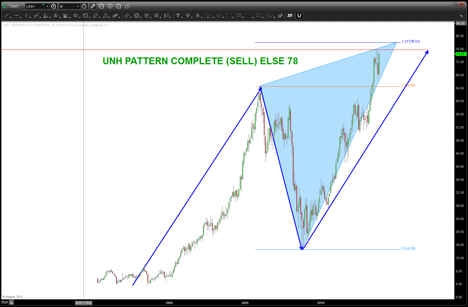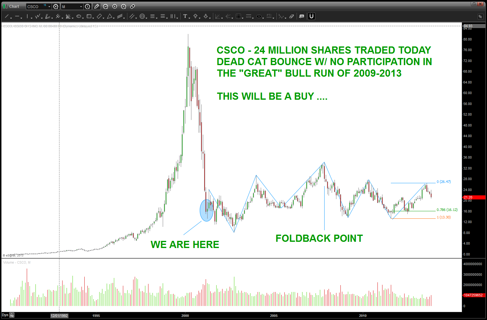 at the time, I was watching, extremely closely, the “standard” .618 price projection and it’s importance due to using the all time low from 1896 at 28.48. the market opened/closed in and around this level for roughly 5-6 months an then exploded higher.