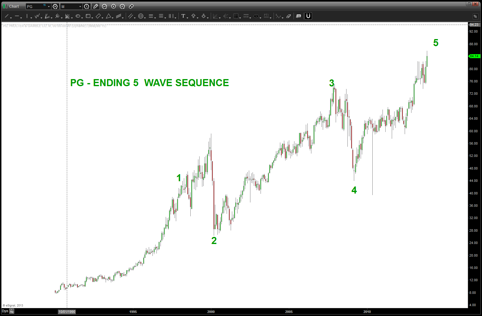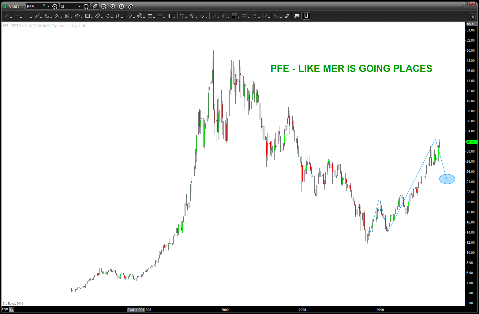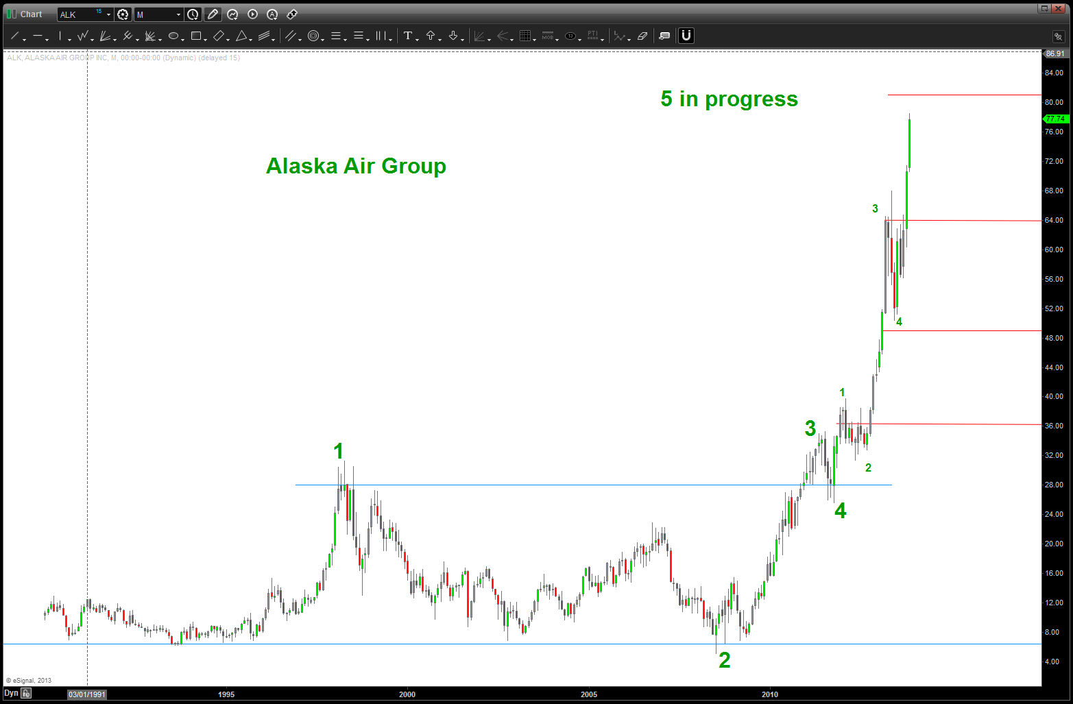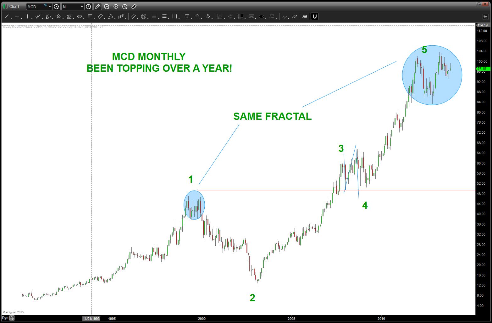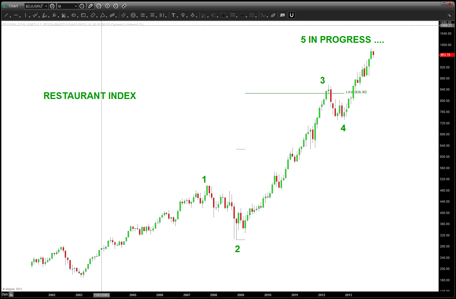 at the time, I was watching, extremely closely, the “standard” .618 price projection and it’s importance due to using the all time low from 1896 at 28.48. the market opened/closed in and around this level for roughly 5-6 months an then exploded higher.