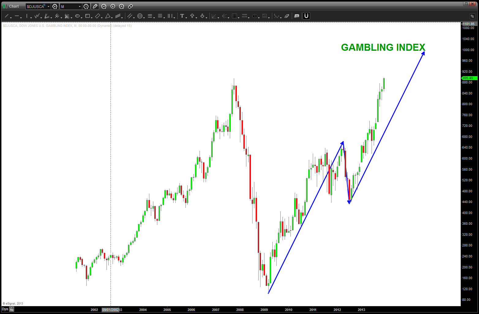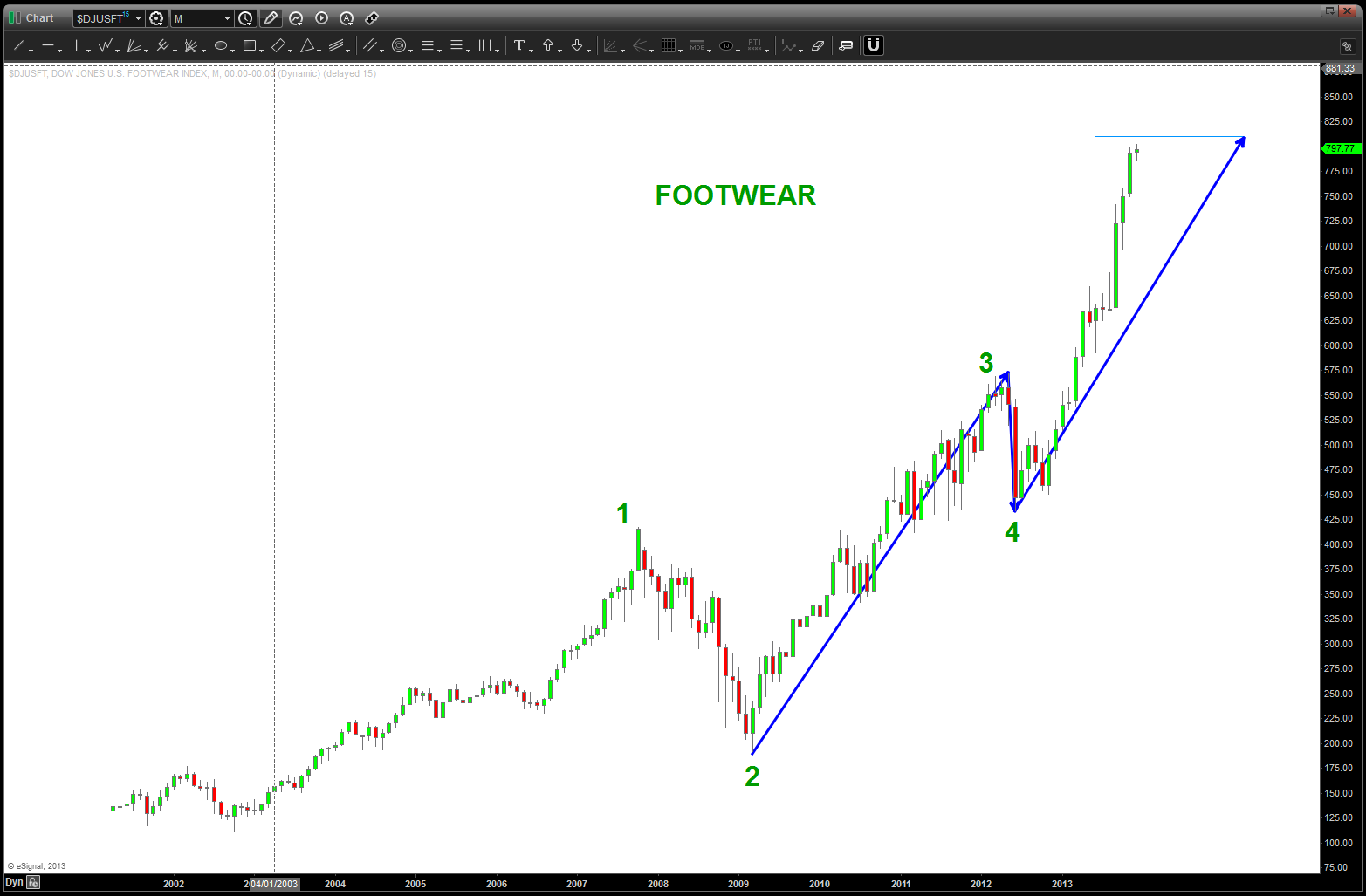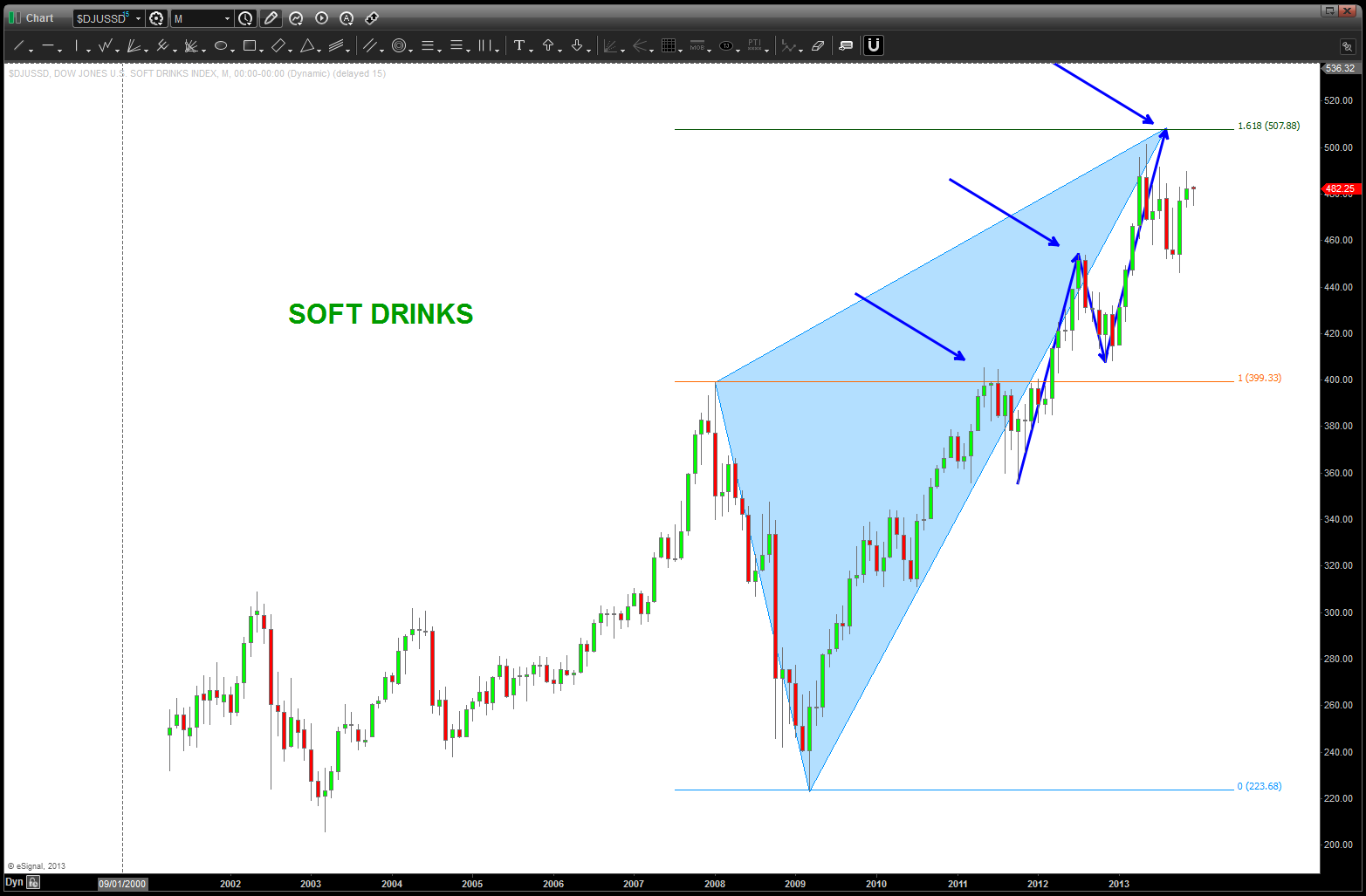 I say this because the patterns are an objective way to look at the market. even w/ all of the doom and gloom about sequestration, budget cuts, troop draw downs the defense sector has steadily gone UP. even the past couple years … I’ll be honest and tell you that, believe it or not, a lot of these companies have amazing diversity and do IT, CYBER, Health Care, high tech solutions, etc. Your Boeing, Lockheed, etc are AMAZING companies that have their fingers in EVERYTHING.