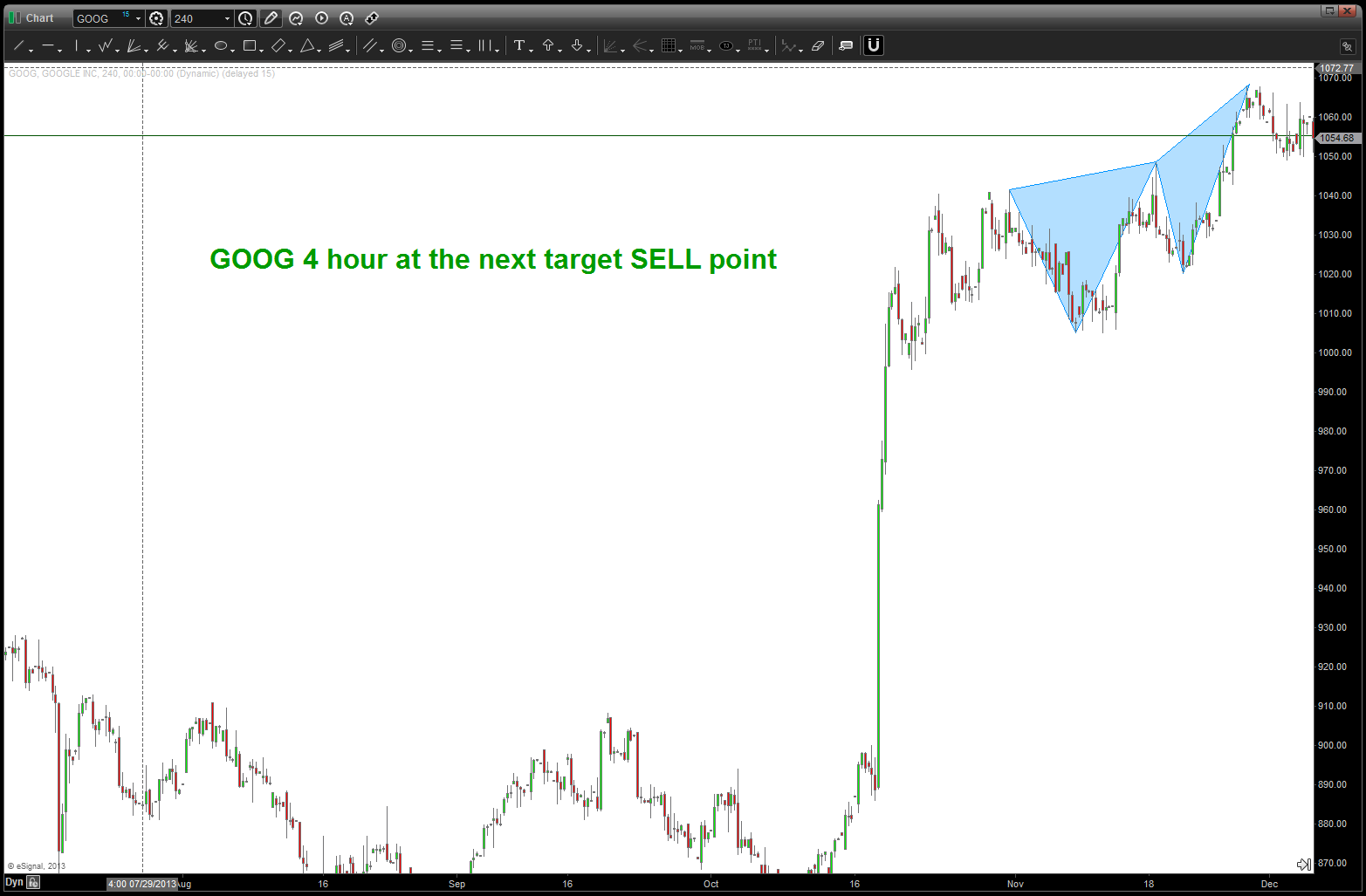 GOOG — how UnAmerican can you get – trying to short GOOG? Well, it’s just numbers and patterns so guess what we are “there” again w/ GOOG so after the near knockout punch of a simple 100 point gap in your face – why not?