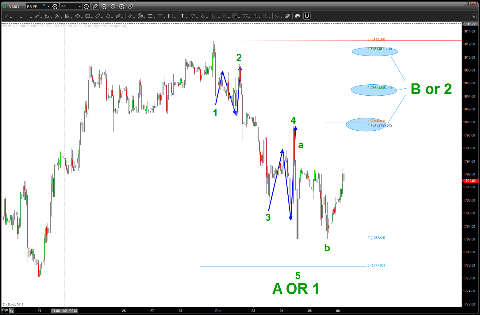 I digressed …here’s what I “see” – note a a very symmetrical 5 wave move down and now the “typical” three wave move up and a PATTERN completing in/around 1800. Upper targets are shown and they could be hit …