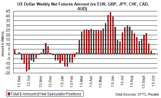 Commitment of Traders (COT): Non-commercial large futures traders, including hedge funds and large International Monetary Market speculators, cut their overall US dollar long positions to a total of $692.8 million as of Tuesday October 1st.