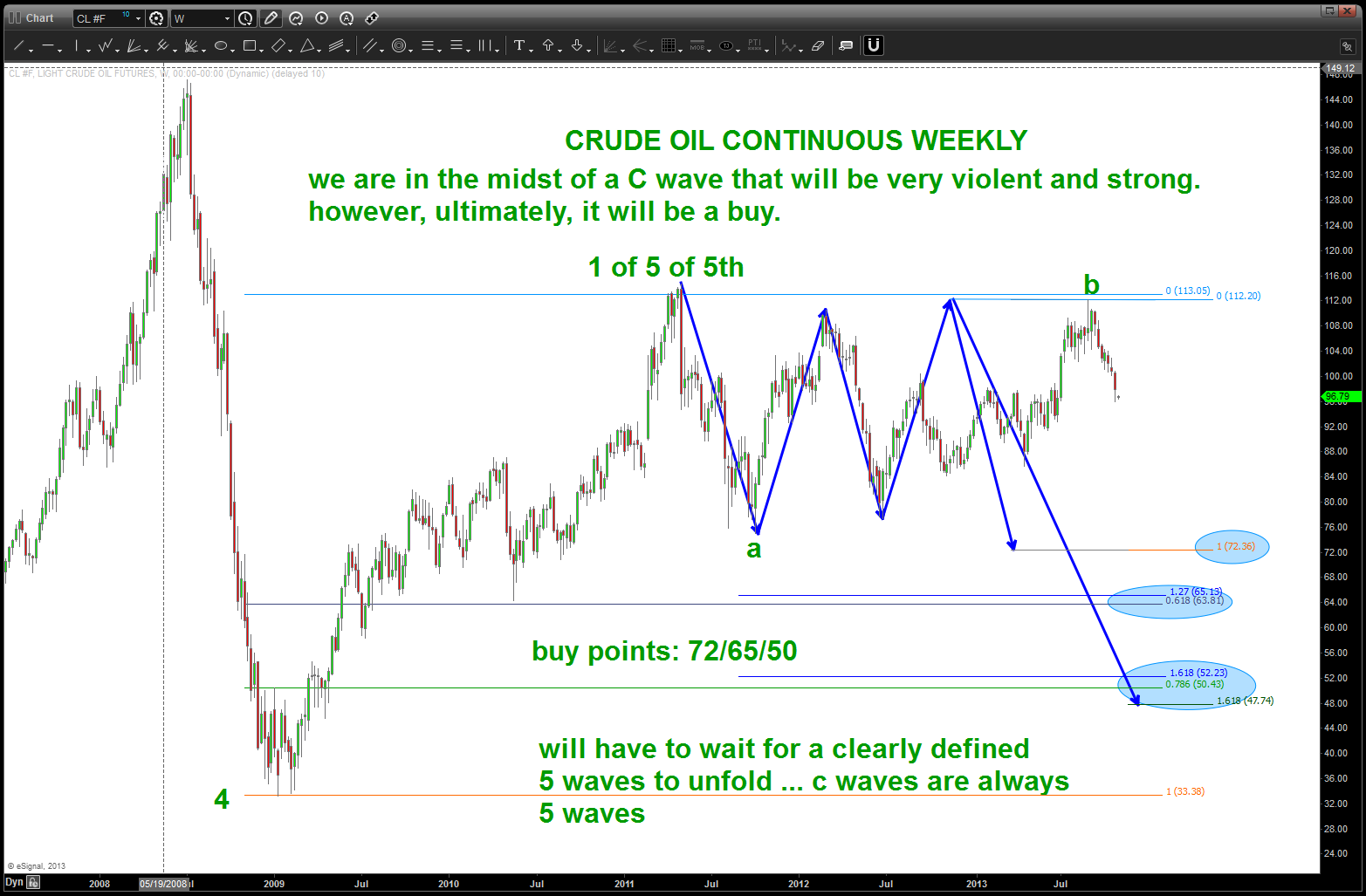 so, below are the pictures that I”m working w/ … the thesis is we have a very powerful C wave in oil down that has just begun and one that will, ultimately need to bought – perhaps 6-9 months from now … enjoy.