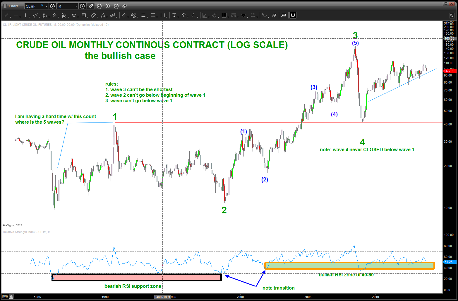 anyway, I have to admit that this scenario I am putting out on the blog is, perhaps crazy, but it’s an interpretation that you can pay attention to or not … the one thing I DO NOT LIKE is that first move up from one ….it sure looks like only 3 waves and, well, that can’t be right BUT in the context of the picture it fits so I am going w/ it. the other thing is wave 4 can’t overlap the end of wave 1 and well, technically, it does go threw there for a bunch of months but NEVER closes below so I’m working w/ that one also .. subjective interpretation so to speak.